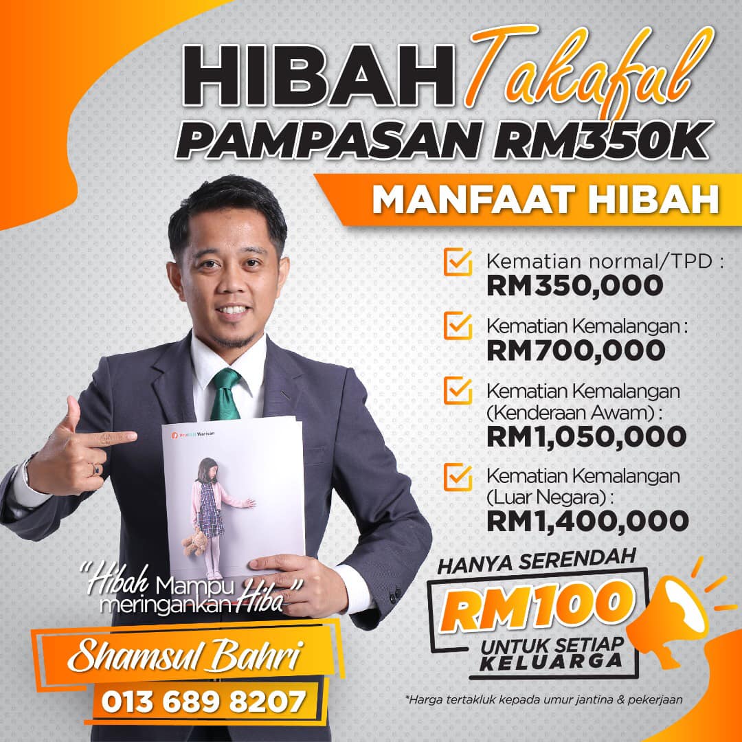 Sebab itu anda perlukan Hibah. Hibah boleh membantu mengekalkan gaya hidup anda dan keluarga sekiranya berlaku perkara yg tidak diingini ke atas diri anda.